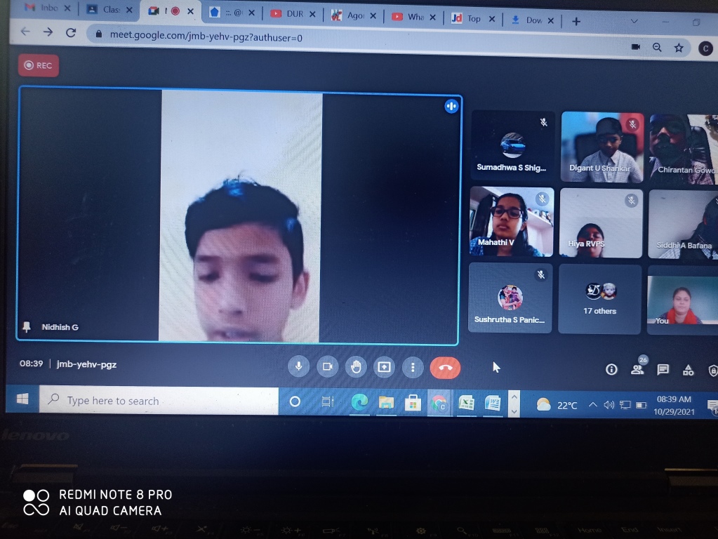 Students of R. V. Public School (grade 5) celebrated Kannada Rajyotsava on the 29th of Oct. 21 The special assembly started with the prayer. Then they sang, danced and delivered speeches. The ambiance was full of energy and enthusiasm. To bring to an end to the assembly a vote of thanks was given by the class teachers of all the three sections.