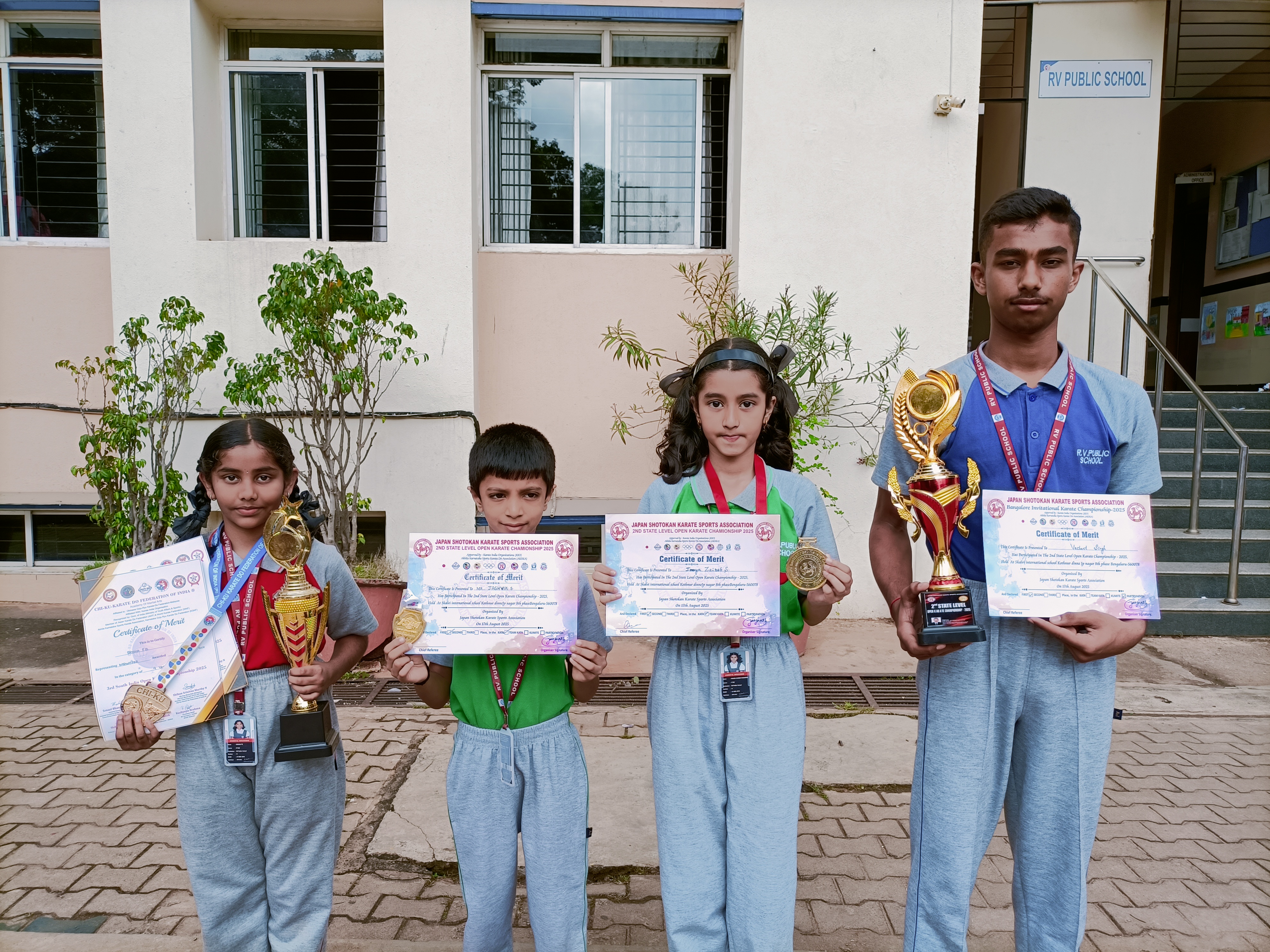 Jashvik S and Inaaya Zainab S won the first place in the Kata event and Vedant Singh won the first place in the Kumite event in the 2nd state level Open Karate Championship – 2025 conducted by Japan Shotokan Karate Sports Association, held at Skalvi International School kothanur on 17th August 2025 and