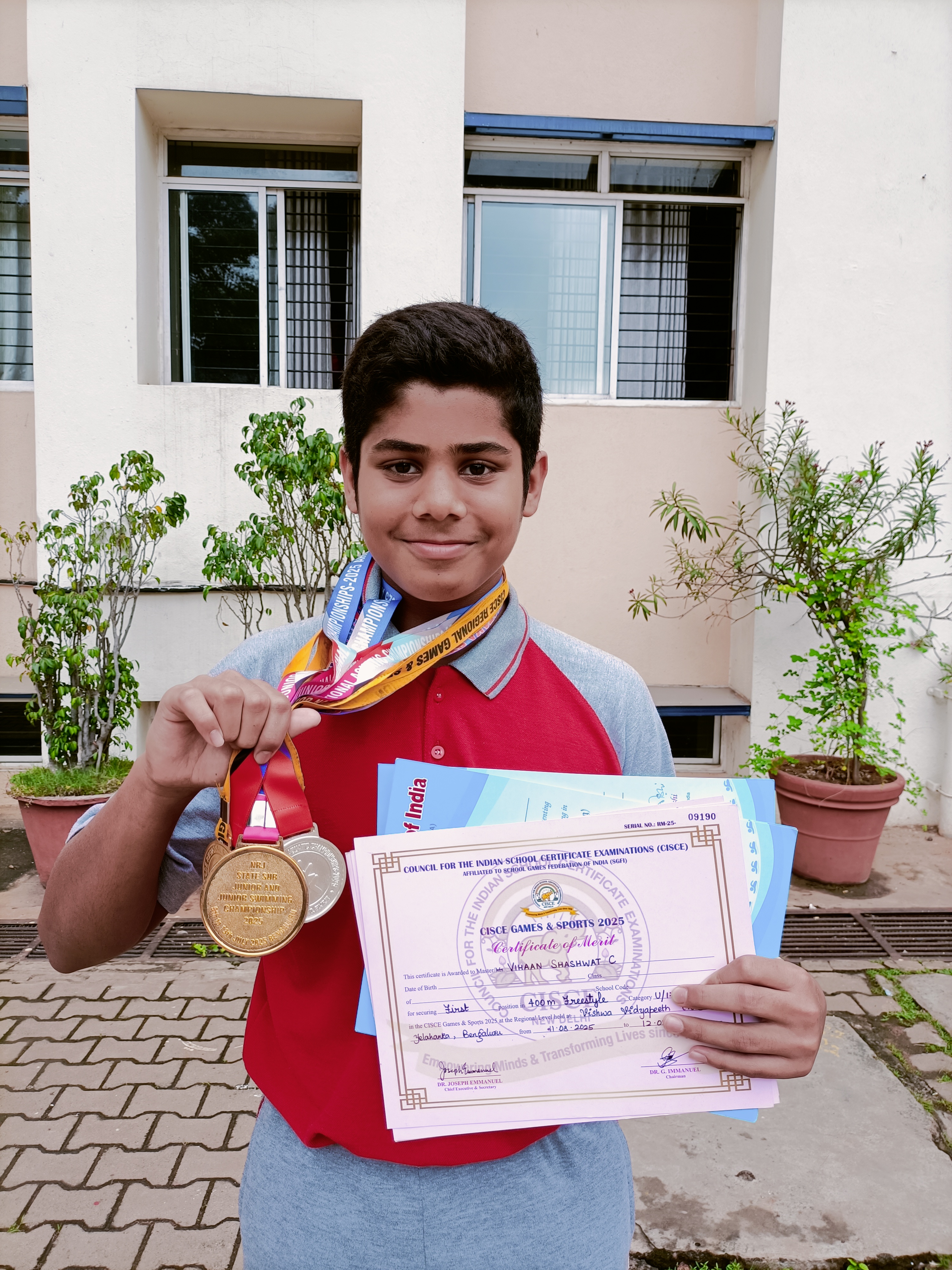 Vihaan Shashwat Chaturvedi of class IX participated in the CISCE Games & Sports 2025 at the regonal level held at Vishwa Vidyapeeth, Bangalore on 11th August 2025 and 12th August 2025 secured the first place in 400m Freestyle under 17 boys; the first position in 200m backstroke Under 17 boys; the first position in 200m Freestyle under 17 boys.