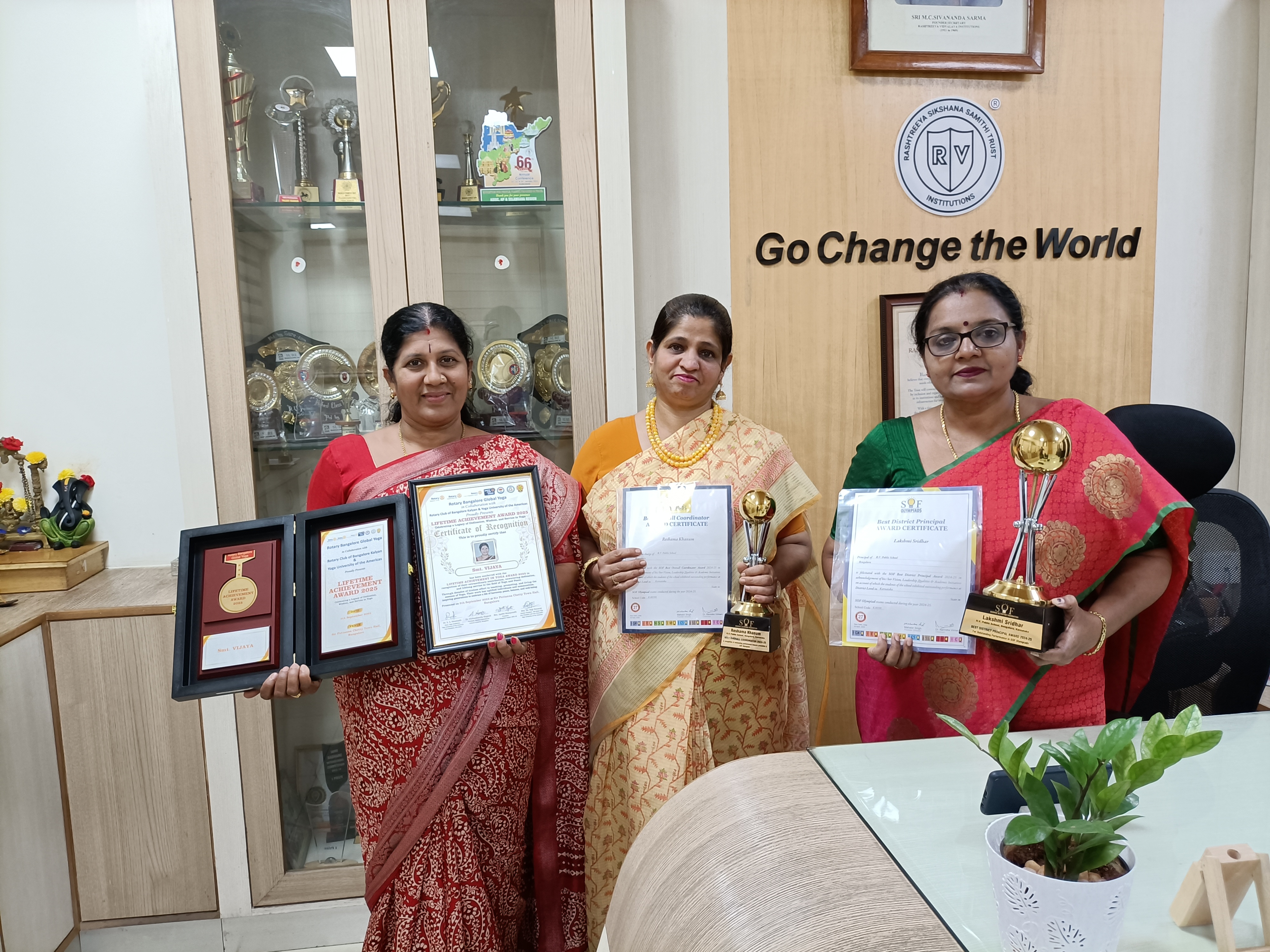 Ms. Lakshmi Sridhar, Principal, RV Public school was awarded the SOF Best District Principal award for her vision, leadership qualities and academic initiatives on account of which the students of the school exhibited outstanding performance at the district level Olympiad exams in Karnataka.